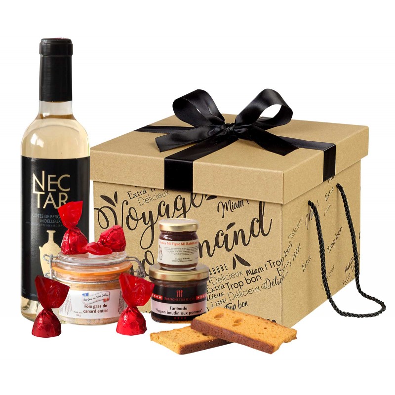 1 Boite kraft décor Voyage Gourmand couvercle nœud Noir anses GM 27*27*20