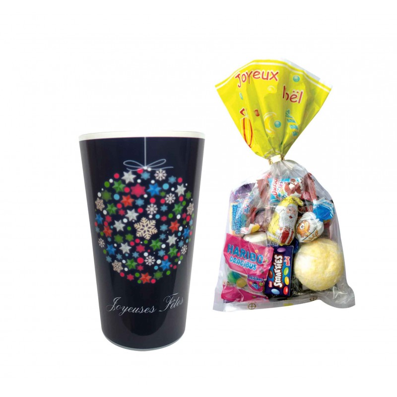 Gobelet recyclable décor Noël bleu garni de 24 confiseries de Noël