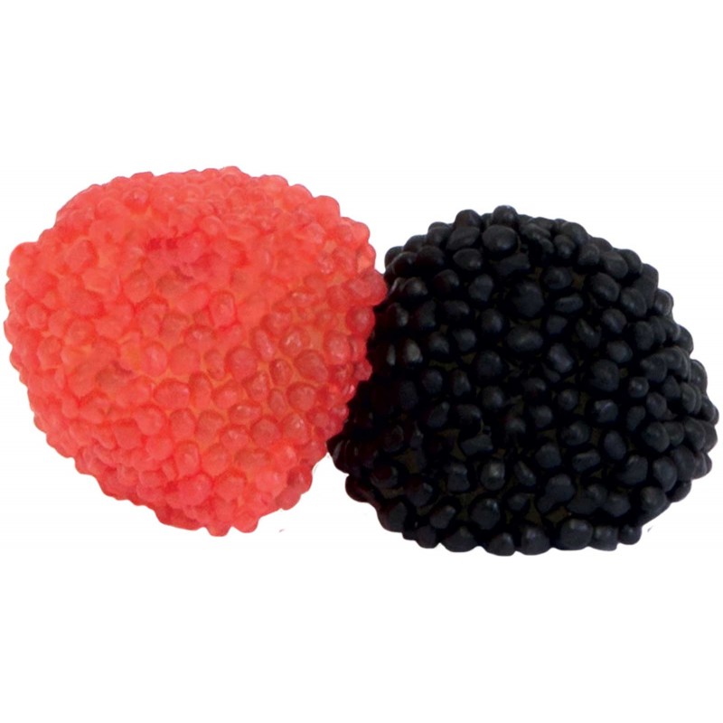 confiserie tendre au goût mûre et framboise recouverte de mini billes sucrées