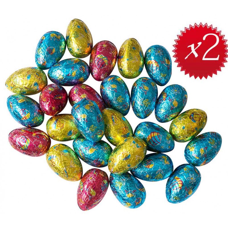 Sachet 72 œufs 5cm 12,5gr à cacher, soit 900gr ( = 100gr Offert soit 8 œufs) Prix au Kg : 13.22 €
